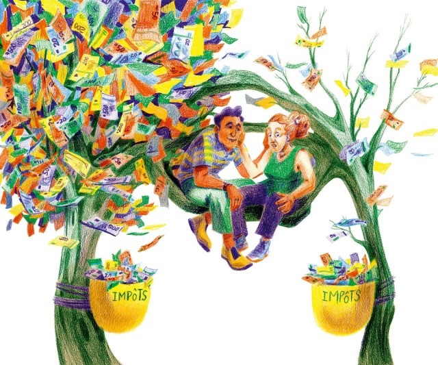 Le passage au prélèvement à la source, à partir du 1er janvier prochain, peut renforcer ou, au contraire, atténuer les inégalités. Premier cas de figure : le couple ne demande pas que son taux d’imposition soit “individualisé”, c’est-à-dire calculé en fonction des revenus de chacun·e. C’est le taux d’imposition global du foyer dit “personnalisé” (sic) qui s’appliquera indifféremment aux deux. Madame Martin comme monsieur Martin se verront prélever donc l’un et l’autre 4,4 % d’impôts sur leur feuille de paye. Vis-à-vis de leurs revenus respectifs, compte tenu de la logique de l’impôt progressif (plus on gagne, plus le taux de prélèvement est élevé), madame sera donc surimposée et monsieur, sous-imposé. Dit autrement, madame sera ponctionnée à hauteur d’un revenu qu’elle ne touche pas et aura donc un salaire net d’impôt comparativement encore plus faible…