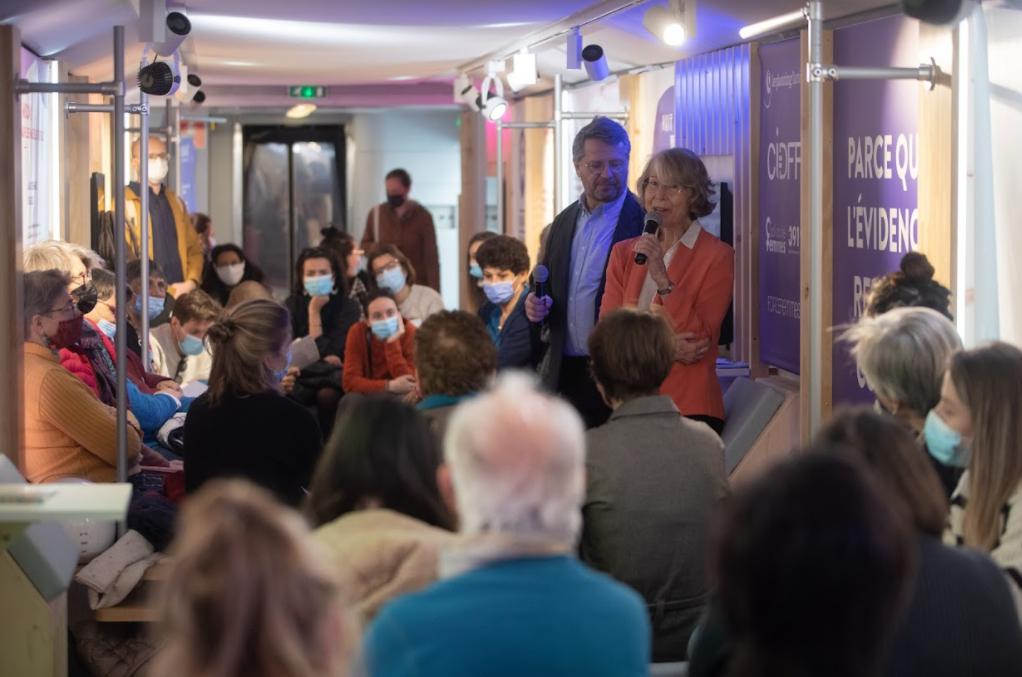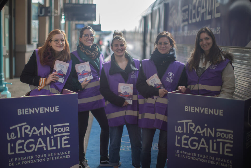 La Fédération Nationale Solidarité Femmes, la Fédération nationale des Centres d’Information Droits des Femmes et des Familles, le Planning Familial et Force Femmes, étaient à bord du Train pour l’Égalité et ont été rejoints par les associations et réseaux locaux, qui ont pris la parole à chaque étape lors de conférences dédiées sur des thématiques variées.