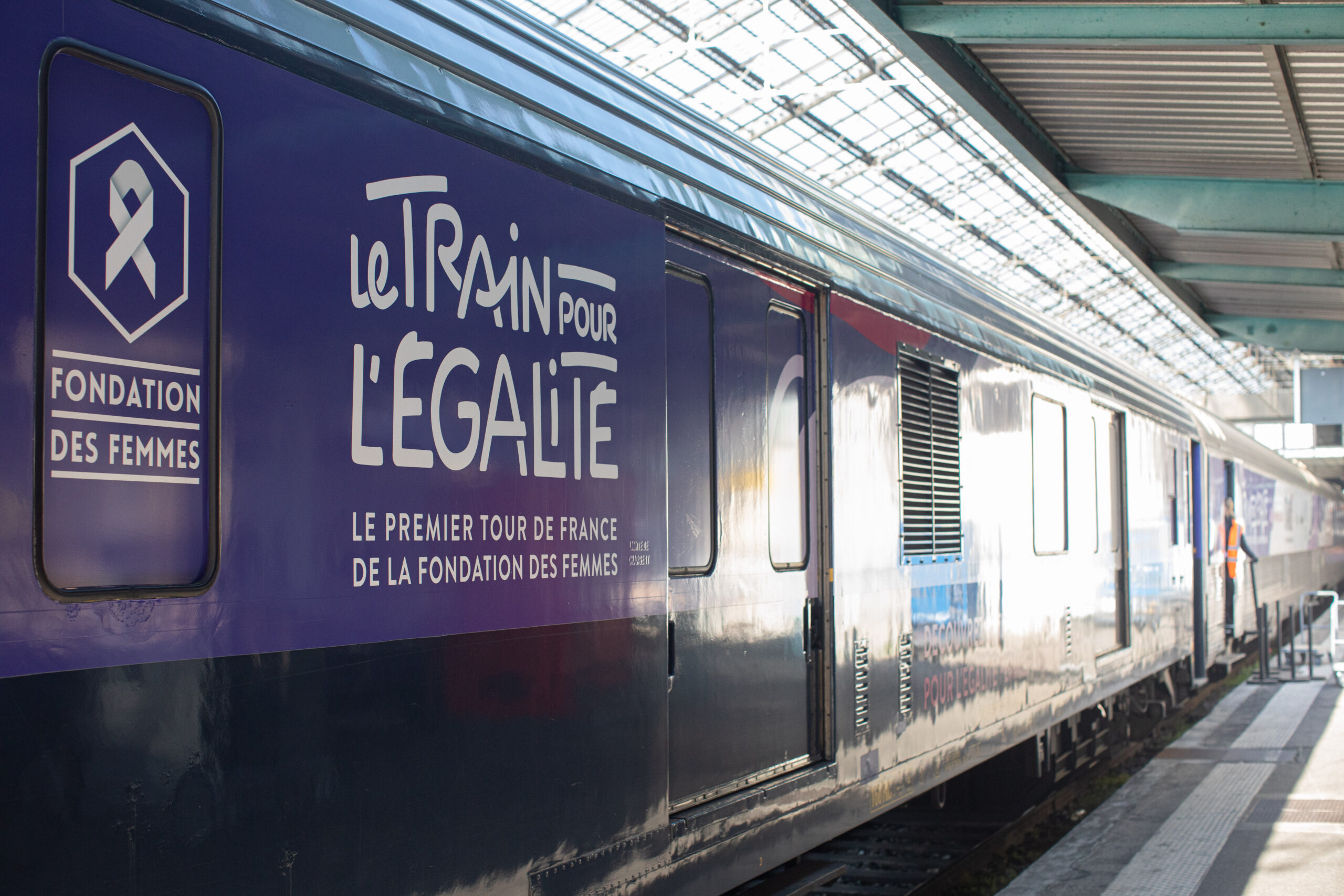 Après son inauguration à Paris, Nantes, Bordeaux, Toulouse, Marseille, Grenoble, Lyon, Lille, le Train pour l’Égalité a marqué un arrêt à Strasbourg le 6 mars 2022.