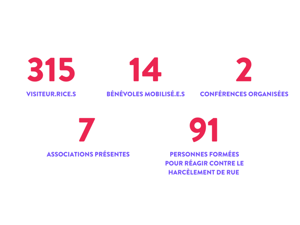 En plus du contenu proposé lors de l’exposition, le public a pu bénéficier de la formation Stand Up afin d’apprendre à réagir face au harcèlement de rue. La voiture Stand Up était animée par les formatrices de l’association En avant toute(s). A Toulouse, 91 personnes ont été formées à la méthode des 5 D.